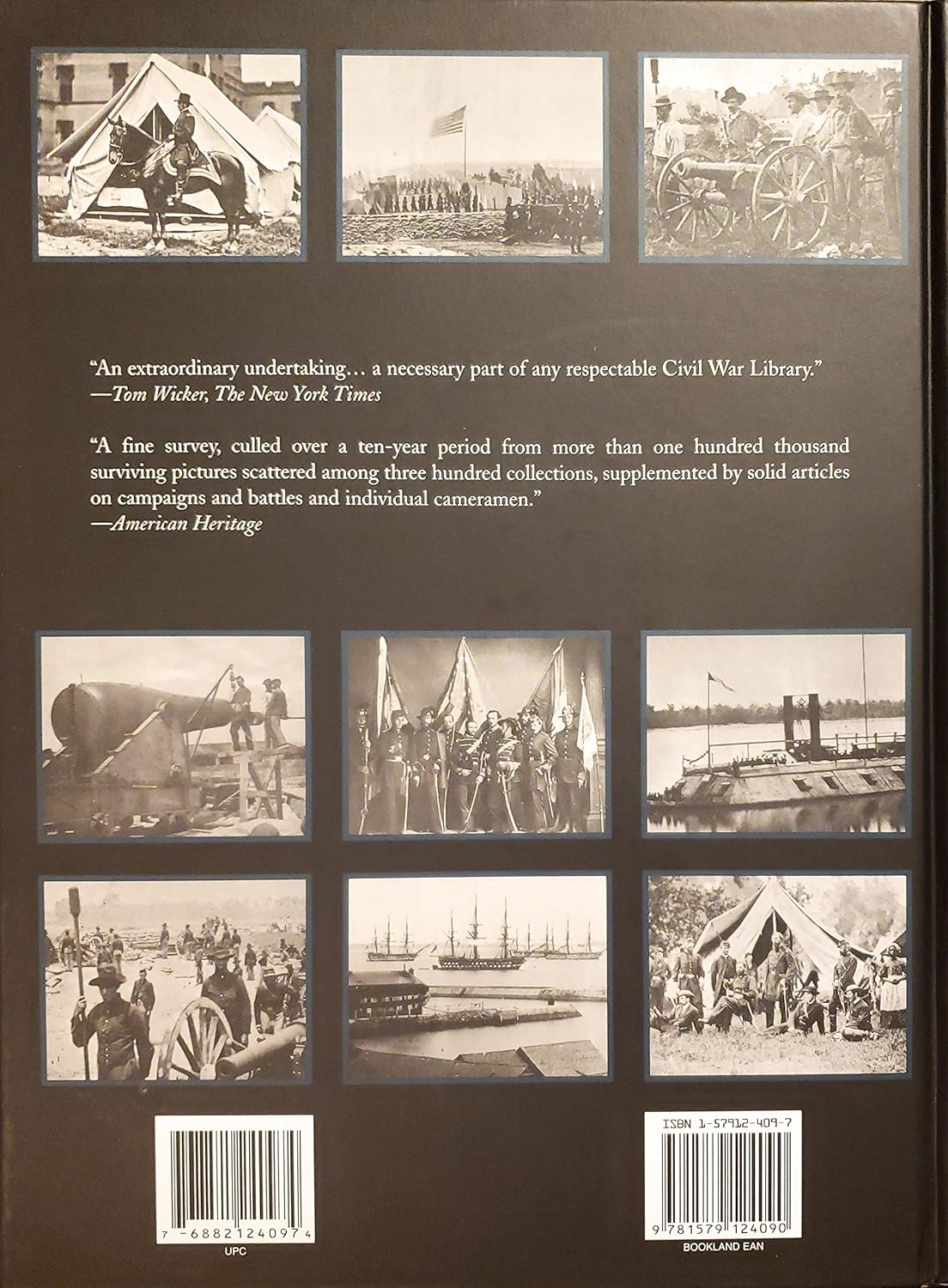 Monumental album offers nearly 4000 rare photographs from the war era. Brings to life not only the battles, bunkers, soldiers, and parades, but also the farms, cities, and towns as they appeared at the time. This singular volume is enhanced with numerous essays by our country’s finest Civil War historians, who provide an overview of each battle, and describe each image. 4000 illustrations. Size 9 x 12 inches.