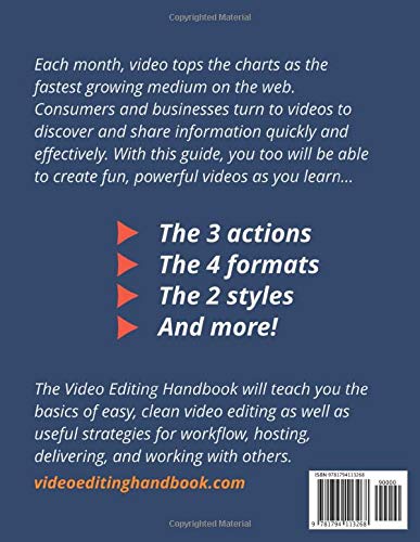 Important! This is the initial release of the Video Editing Handbook. You can find the latest edition here: https://www.amazon.com/dp/B091FYZ7VGI kept this version up because it differs substantially from the next edition. This book includes more steps and images that many might miss in the next editions. However, the next editions link closely with videos on the website, which enhance the learning experience greater than the written descriptions could (at least in my opinion). I’m easy to find online, so if you have questions, please send me a message before you purchase. – AaronDescription for the original release:FULL COLOR EDITION (Amazon Version) – Each month, video tops the charts as the fastest growing medium on the web. Consumers and businesses turn to videos to discover and share information quickly and effectively. With this guide, you too will be able to create fun, powerful videos as you learn: The 3 actions The 4 formats The 2 styles And more! The Video Editing Handbook is ideal for ABSOLUTE BEGINNERS and will teach you the basics of easy, clean video editing as well as useful strategies for workflow, hosting, delivering, and working with others.